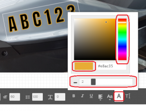 To change the text, click on the text to the desired registration ID. To change the colour of the foreground, click on the text first, go to the lower left most side of the tool, click the tooltip Fill and choose from the preset colours to experience the look and feel of your design.